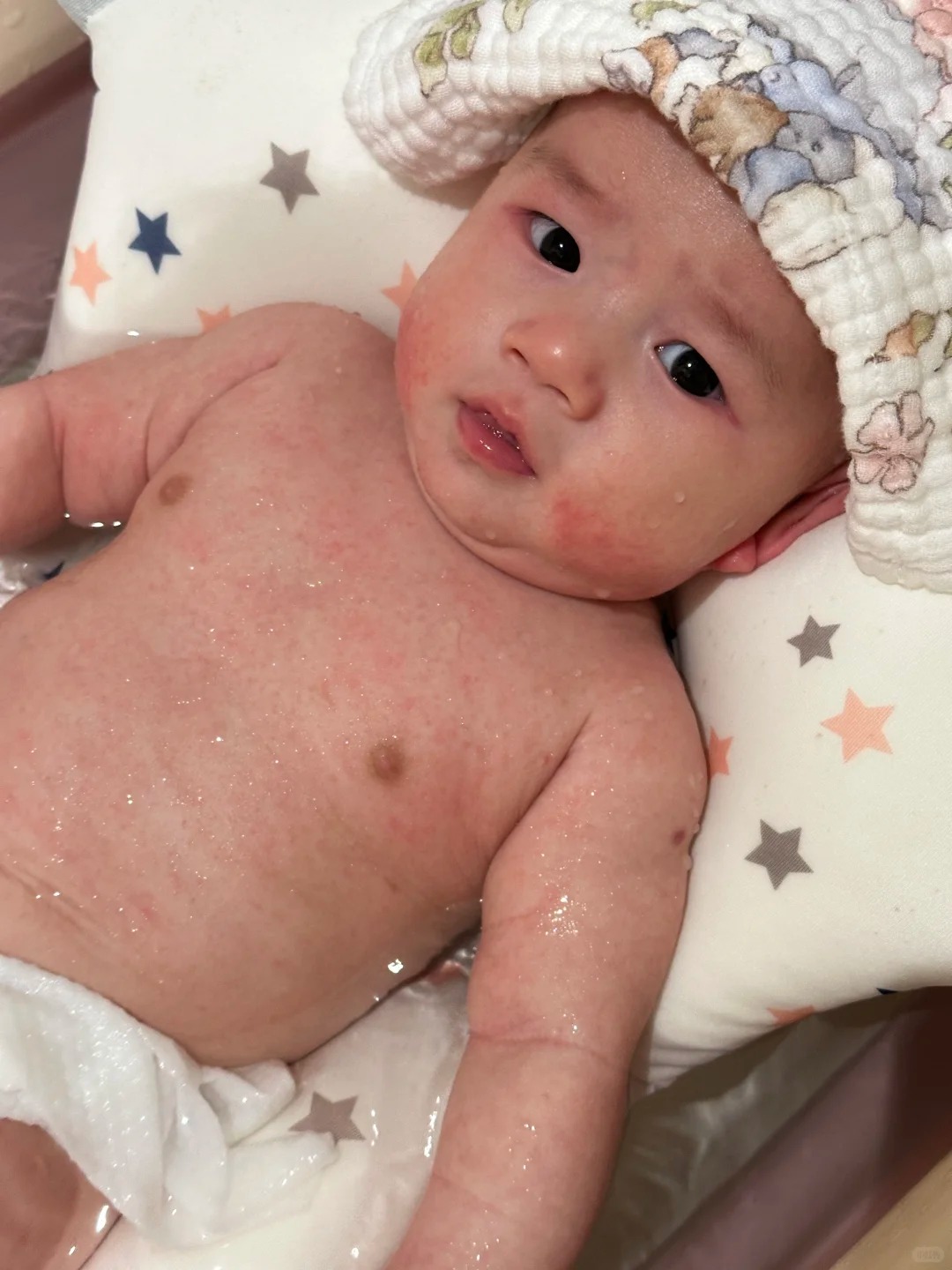 1.皮肤瘙痒:宝宝可能会出现皮肤瘙痒、红肿、起疹子等不适症状,如下图所示。